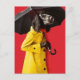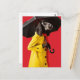 Postal Perro Adorable en un fondo rojo impermeable amaril