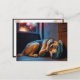 Postal Perro Asustado Mirando Fuegos Artificiales