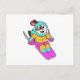 Postal Perro como esquiador con esquís y bufanda