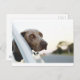 Postal Perro con la cabeza fuera de la ventana del auto