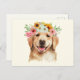 Postal Perro Cute Golden Retriever con Flores