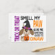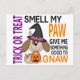 Perro de Halloween huele las camisetas, regalos y ropa de mi pata con un adorable perro de Halloween usando un gorra de brujas y llevando una calabaza de halloween.