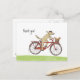 Lindo perro de dibujos animados que lleva un boina y pedalea en una bicicleta roja. La feliz ardilla roja va montada en la cesta. Un divertido dibujo para amantes de los animales. Esta divertida tarjeta postal es personalizable y genial para envíos personales o comerciales. Visita el mundo de garabatos de Jenn para ver aún más ilustraciones divertidas en tarjetas, postales y regalos.