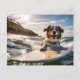 Postal Perro en la tabla de surf