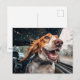 Postal Perro exaltado en la imagen de un coche lluvioso