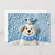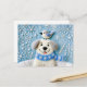 Postal Perro Felino en Nieve con bufanda y pájaro