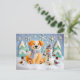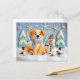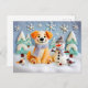 Postal Perro Felt jugando en la nieve con hombre de nieve