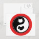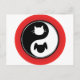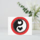 Símbolo atípico yin yang dentro de un círculo rojo, con un gato y un perro envueltos en la persecución interminable.