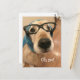 ¿Olvidaste el cumpleaños de alguien? Compénsalo con esta tarjeta postal divertida. El diseño presenta una fotografía de un perro golden retriever triste que lleva gafas de nerd negras y una bufanda alrededor de la cabeza. El texto en el frente dice "¡Oh no!" mientras que el texto personalizable en la parte trasera dice "¡Te felicito con retraso! Espero que haya sido feliz"