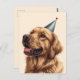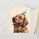 Ilustración de dibujos animados de un perro Golden Retriever con un sombrero de cumpleaños. Perfecto para amantes de las mascotas o padres de perros.