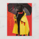 Postal Perro negro con un abrigo amarillo