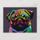Lienzo de impresión de arte de pug. El pug es una raza de "juguete" de perro con una cara arrugada, con la boca amordazada y la cola curvada. La raza de pug tiene una capa fina y brillante que viene en una variedad de colores, y un cuerpo cuadrado compacto con músculo bien desarrollado. Originalmente, los pugs fueron criados para adornar las vueltas de los soberanos chinos durante la dinastía Shang (antes del 400 a.C.) en el este de China. El pug fue importado a Europa en el siglo XVI por la Compañía Holandesa de las Indias Orientales. Se dice que el pug se convirtió en el perro oficial de la Casa del Naranja en 1572 después de que un pug llamado Pompey salvara la vida del Príncipe de Naranja al alertarlo sobre el acercamiento de los asesinos.