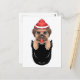 Camiseta de Navidad de Perro Pug Adorable Se Sienta en Bolsillo / Regalo de Navidad / Feliz Navidad / Felices Fiestas / Colección Clásica de Tarjetas Postales Estándar para Familia.