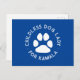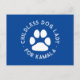 Perro sin hijos Lady por kamala perro blanco divertido garra postal azul y blanco. Tipografía de color gris y angustiado moderno texto blanco y gráficos sobre fondo de color editable azul. Disponible en muchos colores y opciones de estilo.
