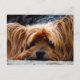 Foto del adorable perro perezoso de Yorkshire Terrier tumbado tímidamente.