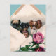 Tres adorables cachorros dentro de un sobre con dos rosas delante