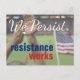 Texto rojo, blanco y azul: Persistimos. La resistencia funciona. Antecedentes: Hombre aplaudiendo la bandera estadounidense Sin embargo, persistió, nosotros también. Resistir, reflexionar, protestar, repetir. Hemos visto que la resistencia funciona, así que continúen con el buen trabajo. No importa lo que digan algunos pequeños antidemócratas, protestar es patriótico.