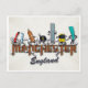 La ciudad de Manchester, Inglaterra, con sus estilizadas versiones de caricaturas de sus monumentos y paisajes urbanos, incluyendo (de izquierda a derecha) los clubes de fútbol de Manchester (United and City), el Ayuntamiento de Manchester, un disco de vinilo de Factory Records, Deansgate Square, un tranvía Metrolink y la Torre Beetham. El Manchester se articula en ladrillo rojo tradicional y arenisca, adornado con flores de algodón.