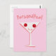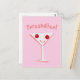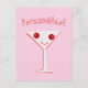 Personalízalo con tu nombre o mensaje. Un lindo ilustracion de un feliz martini rosa con ojos de cereza. Un divertido diseño retro para un fiesta de cócteles, bebidas después del trabajo, la noche de salida de amigos o cualquier celebración.