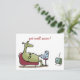 Un triste y verde animal personalizado con una pierna rota se sienta en el sofá viendo la televisión. Estar enfermo es tan aburrido, esperamos que se recupere pronto. ¡Puedes cambiar las palabras de esta postal!