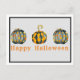 La gran postal de Halloween presenta un ilustracion acuarela de calabazas adornadas con un fondo negro con texto de personalizable naranja.