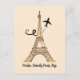 Personalizar esta moda minimalista tarjeta postal de París para su reunión familiar o viaje de chicas. Un dibujo artístico de la torre Eiffel con un avión volando detrás para simbolizar tu viaje en avión. Guión cursivo personalizado lindo en este keepsake.