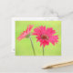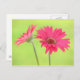 Yo llamo a estas margaritas germinales rosas tan frescas. Los colores de la margarita y del fondo son tan frescos... sobre todo el fondo verde helado. La foto de estas flores fue tomada en nuestro jardín.