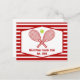 Esta elegante y moderna tarjeta postal del club de campo cuenta con raquetas de tenis y una pelota por encima del nombre del equipo de tenis y la fecha establecida. Postales de rayas rojas y blancas para los jugadores de tenis y los miembros del club de campo.