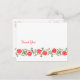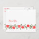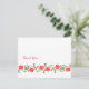 Gracias postales con letras de escritura roja y arte vintage restaurado de margaritas y hojas deslizantes en rojo y dorado de un manuscrito antiguo.