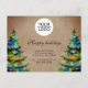 Personalizado de logotipo de adición rústica Textos Postal empresa de vacaciones de árbol de Navidad. Fondo rústico beige y colorido árbol de Navidad. Inserte su logotipo en la plantilla y personalizar el texto, el nombre de la empresa, la dirección y la información de contacto. Tarjeta de vacaciones para sus clientes y socios comerciales.