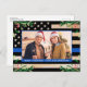 Envía saludos navideños de Feliz a amigos y familia con esta tarjeta única de Navidades de la policía de la Línea Azul - Bandera estadounidense con los colores de la bandera de la policía, negro y azul moderno con hojas y bayas huecas en un fondo de madera. Personaliza con tu foto y nombre de familia favoritos. DERECHOS RESERVADOS © 2020 Judy Burrows, Black Dog Art - Todos los derechos reservados. Personalizado de Navidades de policía foto tarjeta postal azul de bandera estadounidense