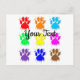 Un patrón colorido de huellas de pata de perro con efecto de mancha de tinta. El texto se puede editar para la personalización. Bueno para negocios personales y relacionados con perros.