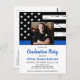 Invitaciones delgadas de graduación de la policía de la Línea Azul o invitaciones de los partidos de retiro de la policía. Celebre años de servicio dedicado, o celebre su nuevo graduado de la academia de policía, e invite a amigos y familiares a su fiesta de aplicación de la ley con esta Invitación a la Retirada de la Policía con Bandera Azul delgada y invitaciones a graduación de la academia de policía - diseño de la bandera norteamericana en colores de la bandera de la policía, diseño angustiado. Esta invitación a la jubilación de oficiales de policía también es perfecta para invitaciones a graduarse en la academia de policía, cambiar de lugar de personalización. Vea nuestra colección para ver regalos de retiro de la policía, regalos de graduación de la policía, favores del partido y suministros. DERECHOS RESERVADOS © 2021 Judy Burrows, Black Dog Art - Todos los derechos reservados. Personalizado de graduación de policía - Tarjeta postal con invitación
