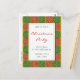 Una plantilla de postales fiesta Navidades personalizados con un patrón de fondo de baldosas fleur de lis vintage en un lado y espacio para la información del fiesta personalizado y dirección de retorno en la parte posterior. Personalizar Para cambiar fuentes, tamaño y más, incluso para guardar el diseño para más adelante.