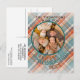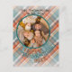 Única, clásica, bonita y decorativa tarjeta de felicitación de temporada navideña. Con diversión Feliz Día de Acción de Gracias en un cálido y colorido color azul verde azulado y naranja color rojo color lona tartán. Con espacio para personalizar o personalización con tu propia foto alegre y nombre familiar en la parte delantera de la tarjeta, y un poema de bienvenida de temporada de personalizable en la parte trasera de la tarjeta con espacio para nombres de familiares.