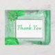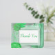 Impresionantemente hermosa, esta tarjeta de agradecimiento verde personalizado presenta una flor verde, imágenes de madera, y "Gracias" escrito en negrita y verde. La parte trasera está cubierta por una sombra verde claro. ¡Elige la tuya! Diseño de RSVP: WeddingsbyRhoadie Obra artística temática de otoño en el frente: Oberholster Venita