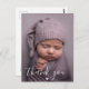 Personalice estas minimalistas y elegantes tarjetas de agradecimiento para bebé con una hermosa foto de su bebé. Gracias a tu familia y amigos que te han bañado con su amor y te han presentado a tu recién nacido con una imagen que pueden apreciar por muchos años. Las tarjetas presentan un elegante y moderno guión de "Gracias" con un corazón pequeño y un clásico mensaje de agradecimiento del personalizado de tipografía al revés. ¡Una forma maravillosa de agradecer a los bebés que duchan cuando nacen! Por favor, tenga en cuenta que el texto escrito a mano está en blanco y que se vería mejor en la foto de fondo más oscura.