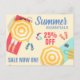 Anuncie una venta de stock de verano enviando a los clientes una atractiva postal personalizado.