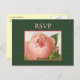 Postales del personalizado RSVP con una simple rosa rosada y rosebudo de arte botánico vintage sobre un falso fondo de tela verde. Personalizar Esto para cambiar fuentes, colores, tamaño y más, incluso guardar su diseño para más adelante.