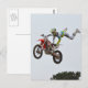 Piloto de motocross freestyle colgando de la parte trasera de la moto.