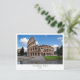 This postcard captures the timeless power and grandeur of the Colosseum in Rome. The ancient stone arches rise in layered tiers, weathered yet imposing, set against a bright sky that highlights the amphitheater’s monumental scale. Cobblestone paths and surrounding greenery frame the scene, giving it a warm, historic atmosphere. The design evokes the drama, history, and architectural mastery of one of Italy’s most iconic landmarks.