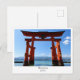 Celebrate the sacred beauty of Miyajima with this striking postcard featuring the iconic floating torii gate of Itsukushima Shrine. Painted in vivid vermilion and rising from tranquil waters, the gate stands as a timeless symbol of spiritual transition and architectural grace. Framed by distant mountains and a serene blue sky, this image captures the peaceful majesty of one of Japan’s most beloved landmarks.