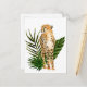 Cheetah Outlook I de Annie Warren. Una gueparda de color acuático con hojas verdes tropicales al fondo. | 164730Z
