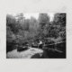 Postal con un hombre pescando en su canoa en las montañas Adirondack alrededor de 1905
