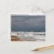 Un hombre al borde de las olas pescando en una mañana tormentosa.