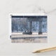 Tarjeta de agradecimiento con una imagen de un par de chicos sentados en un bote de pesca en una fría mañana de invierno después de una nevada en el lago Taneycomo en Branson, Missouri. La niebla y el vapor salían del agua golpeando el aire frío, dándole un ambiente místico.
