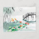pintura con tinta de peces koi nadando con gracia en un estanque tranquilo, con colchonetas de lirios flotando suavemente en la superficie.