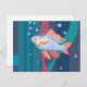 Postal con arte animal submarino, peces de perca con aletas rojas y nadadores de cola en algas marinas. © Julia Khoroshikh www.juliakhoroshikh.art #underwaterart #fishart #zazzlemade #nauticalDecoración #postcards #greetingcard #postcross