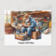 Postal Pescador en la tienda de pesca feliz cumpleaños