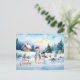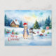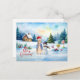 Pedro el conejo en un paisaje nevado con pan jengibre, muñeco de nieve y palomas de soltero